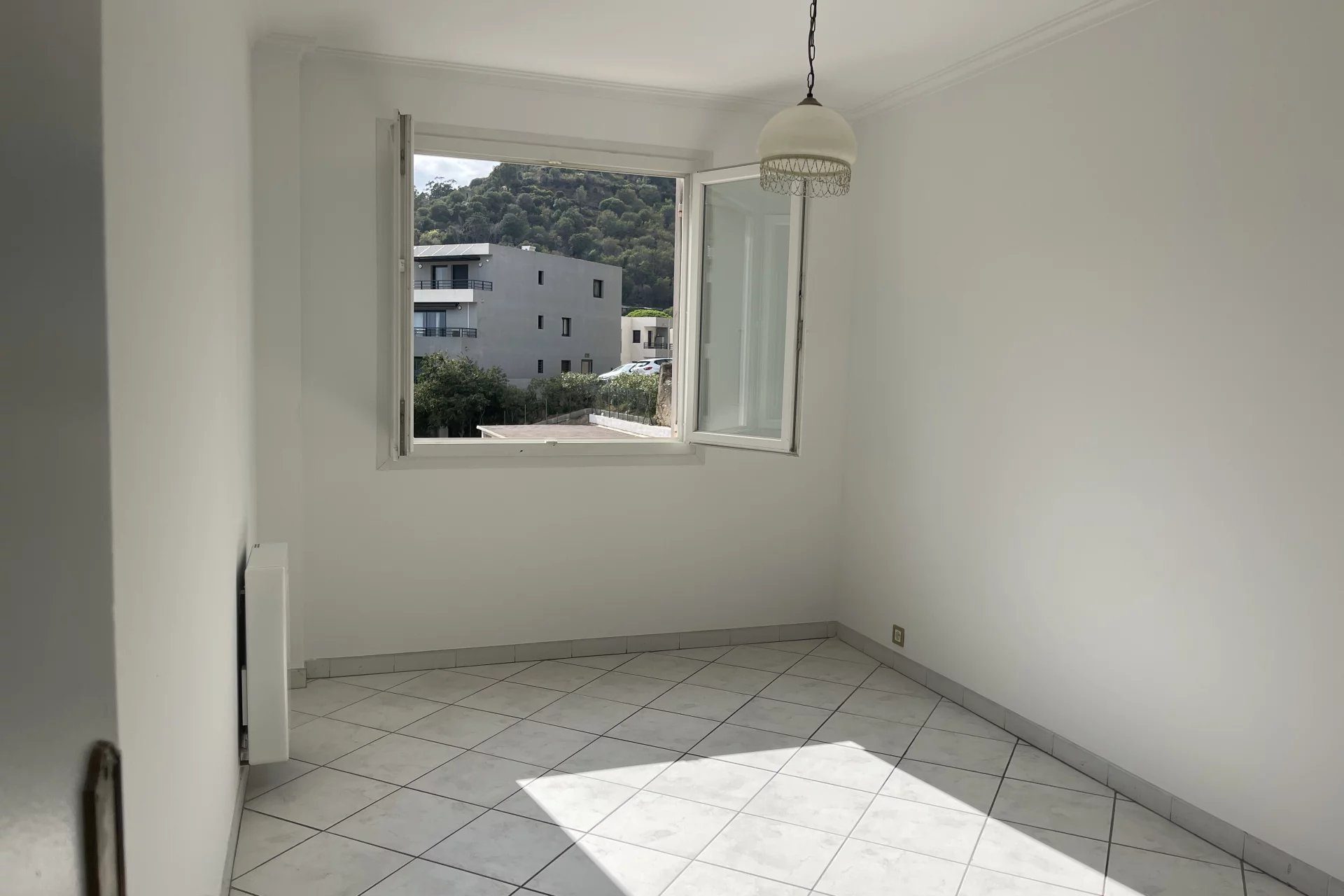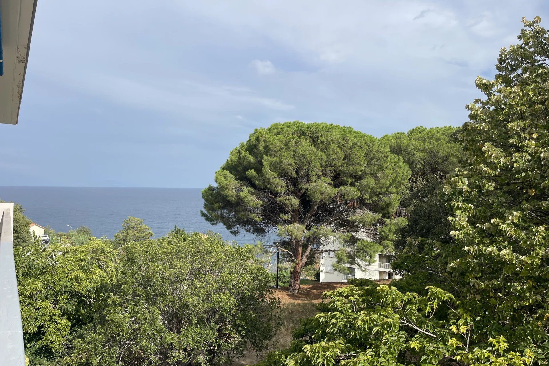 Une vue dégagée du balcon, une cuisine ouverte équipée de four/plaque/hotte, un séjour climatisé, trois chambres, une salle de bain et un wc indépendant. De nombreux rangements, une cave et une place de parking privative.